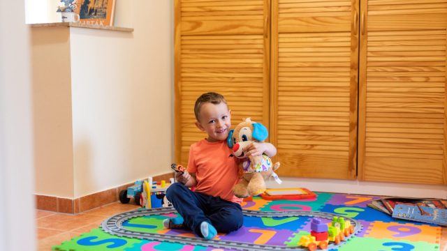 Az első képre kattintva egy virtuális sétán vehetsz rész. A nyilakra kattintva tudsz belépni a helyiségekbe. Mobilon a képernyőt simítva, számítógépen az egér bal gombját lenyomva és az egeret mozgatva tudsz szétnézni. Mik találhatók az elemelten? Két hálószoba, erkély, fürdőszoba káddal, relax & játszósarok, galéria.